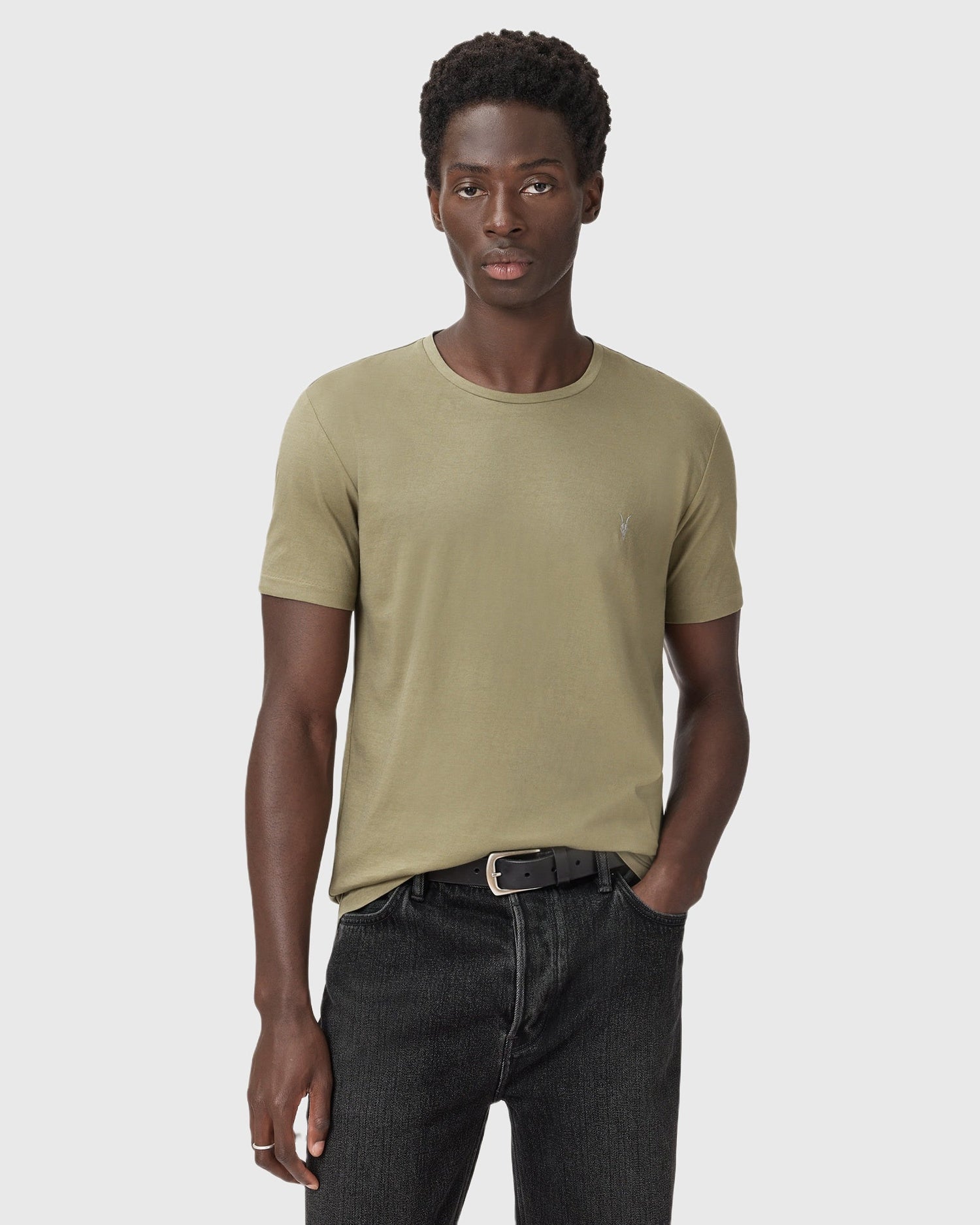 טי שירט קצרה לגברים מבית המותג אולסיינטס. גזרת סלים פיט, עם מפתח עגול, שרוולים קצרים ולוגו המותג רקום בצד החזה.