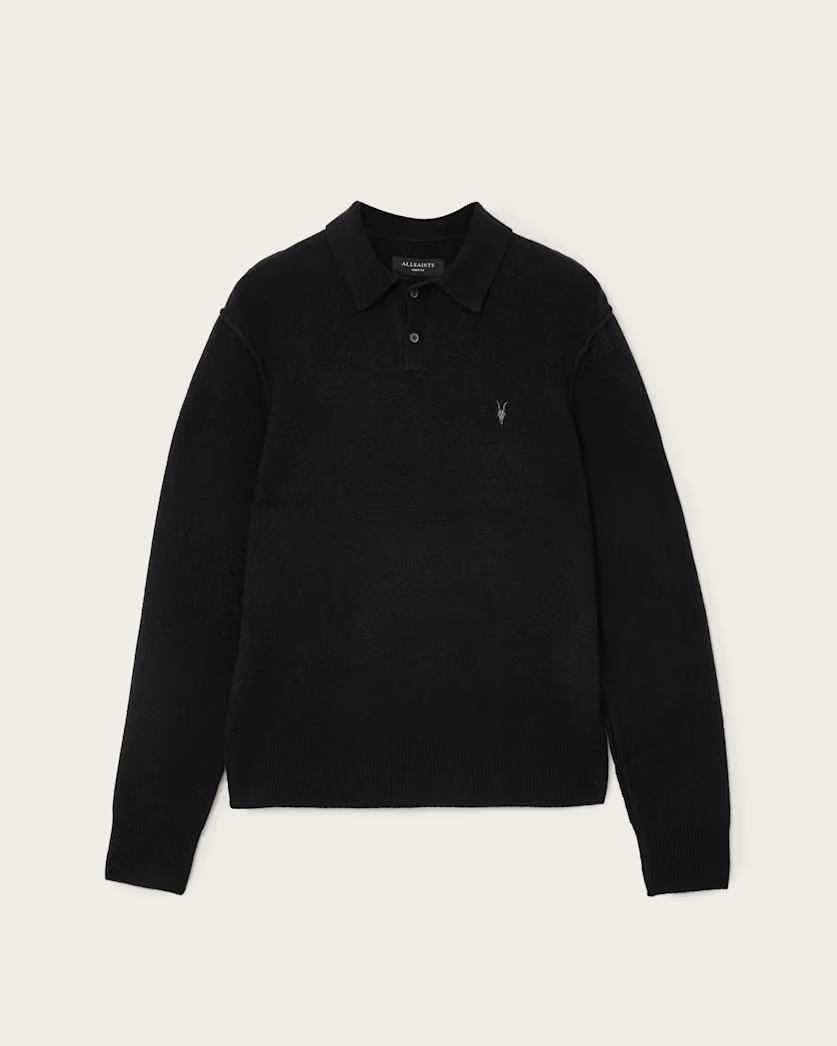 סריג פולו לגברים מבית המותג אולסיינטס. בגזרה קלאסית, עם צווארון פולו, שרוולים ארוכים בשילוב לוגו המותג בצד החזה.