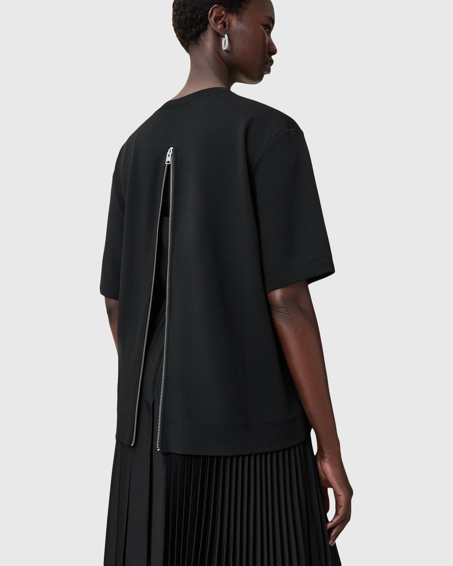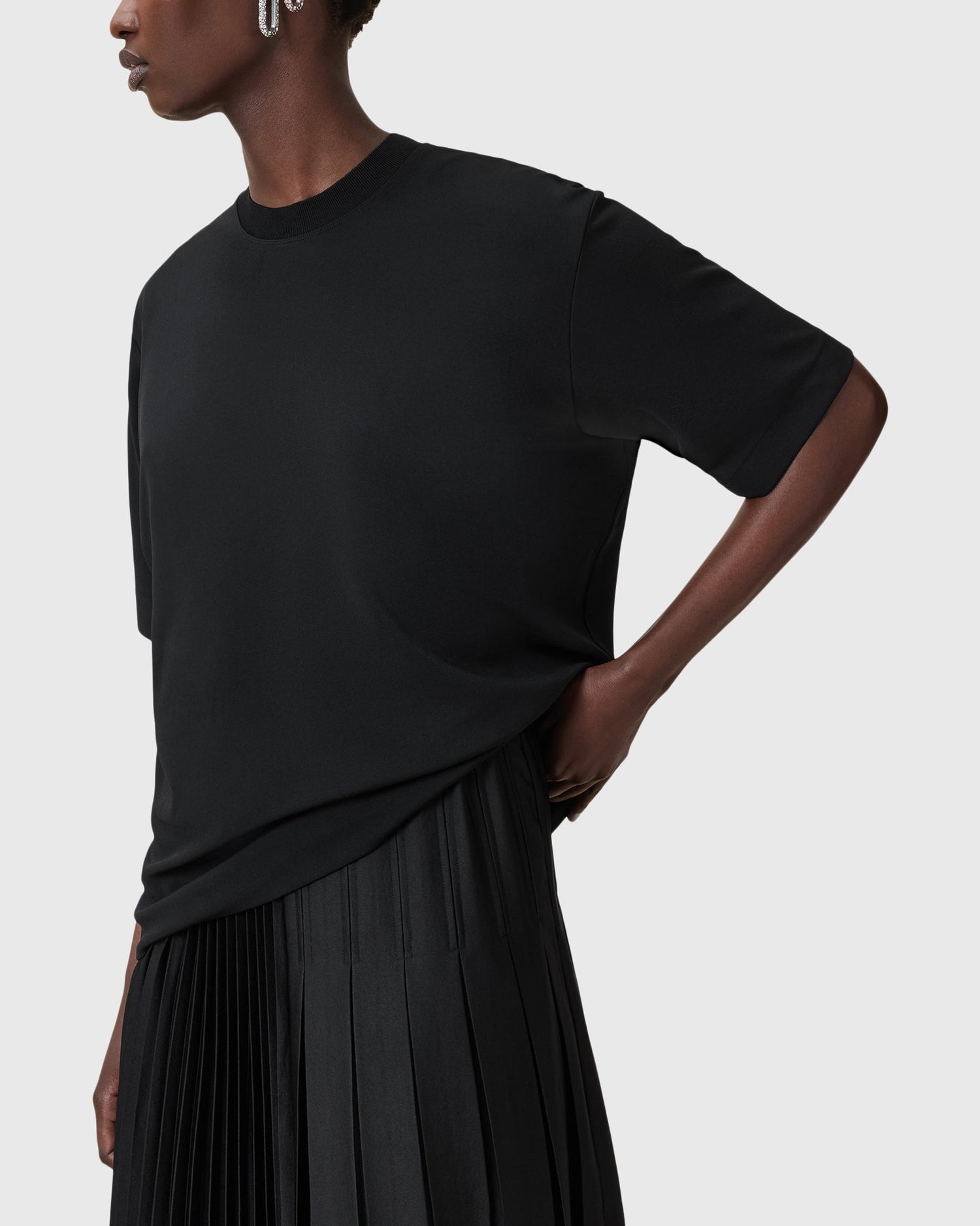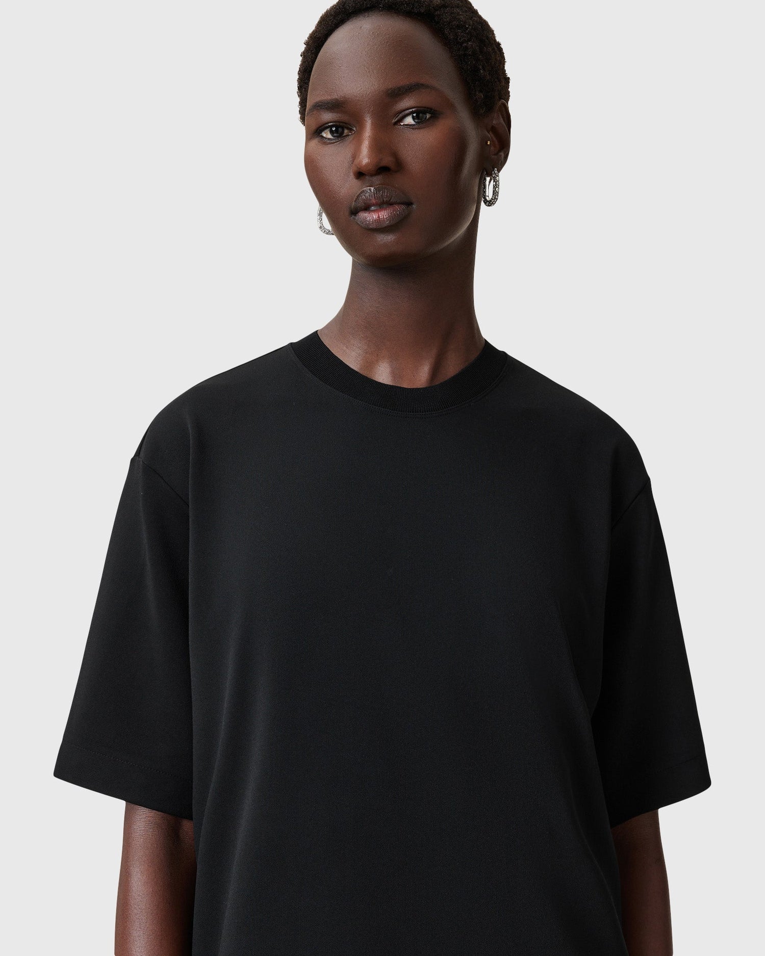 שמלת מידי 2 ב- 1 מבית המותג אולסיינטס. בגזרה קלאסית רגילה, עם חולצת טי שירט הניתנת להפרדה, בסיס השמלה עם מפתח וי, כתפיות דקות וחצאית משוחררת.